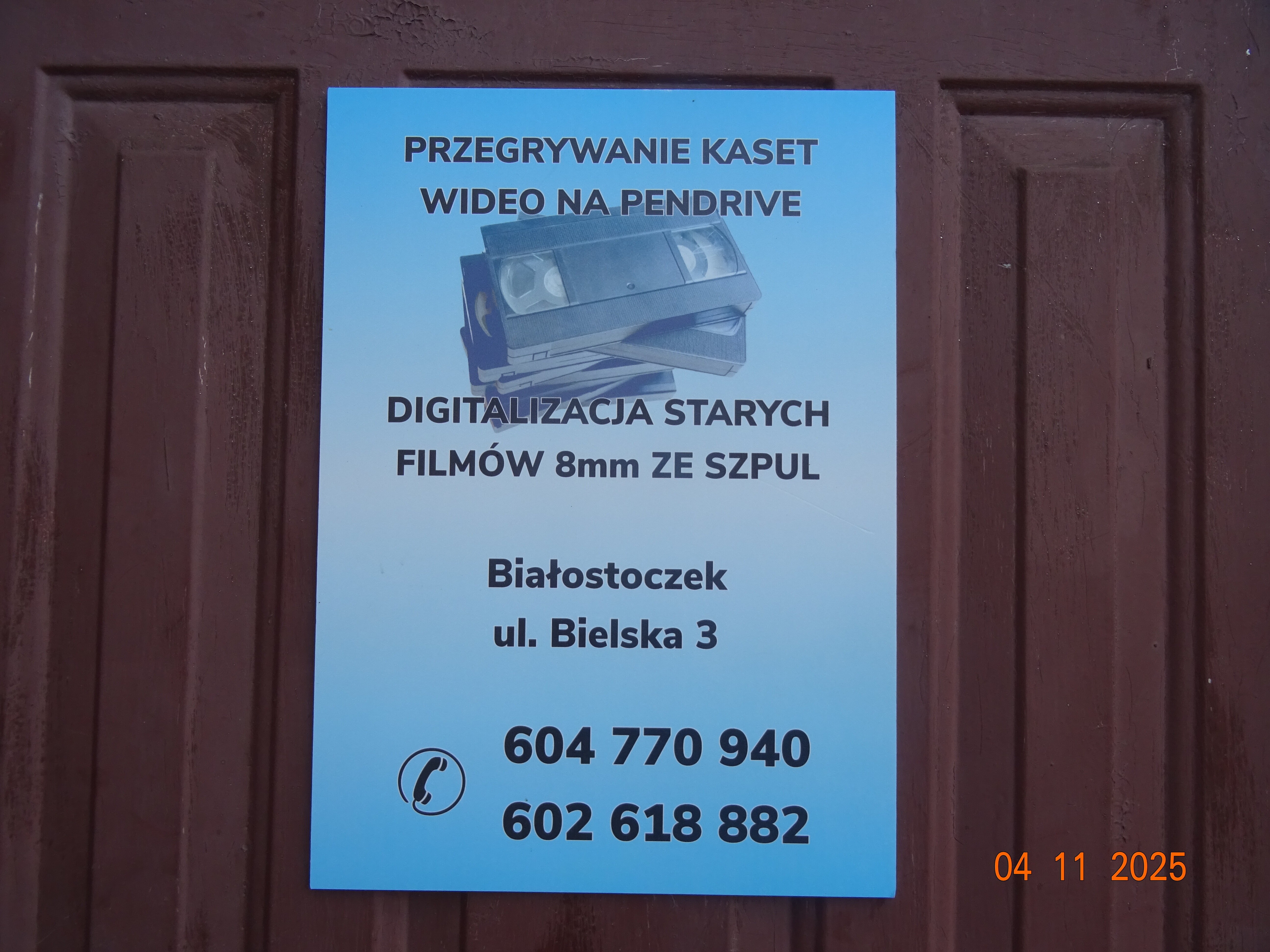 Firma oferuje usługi w zakresie transferu taśm VHS i filmów.